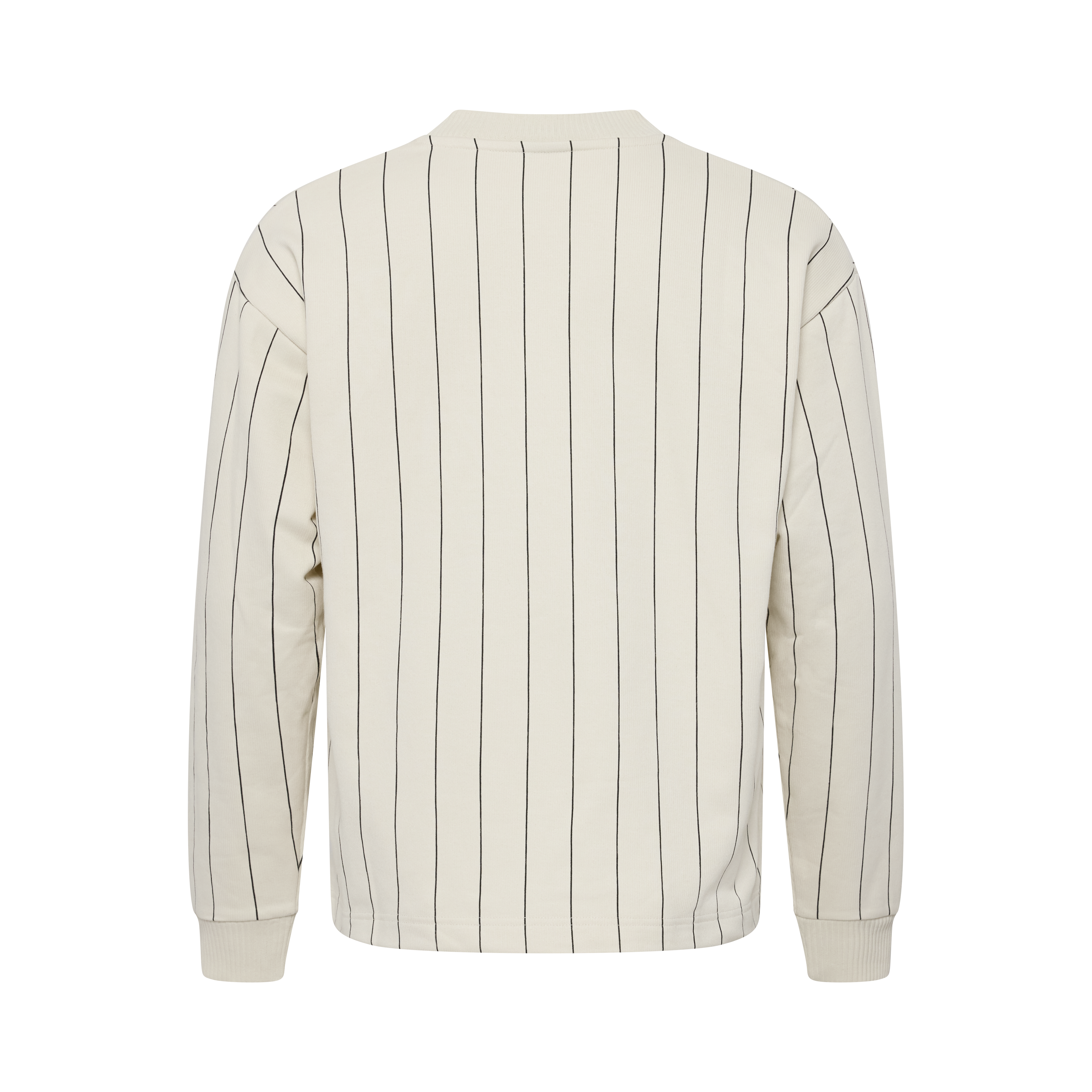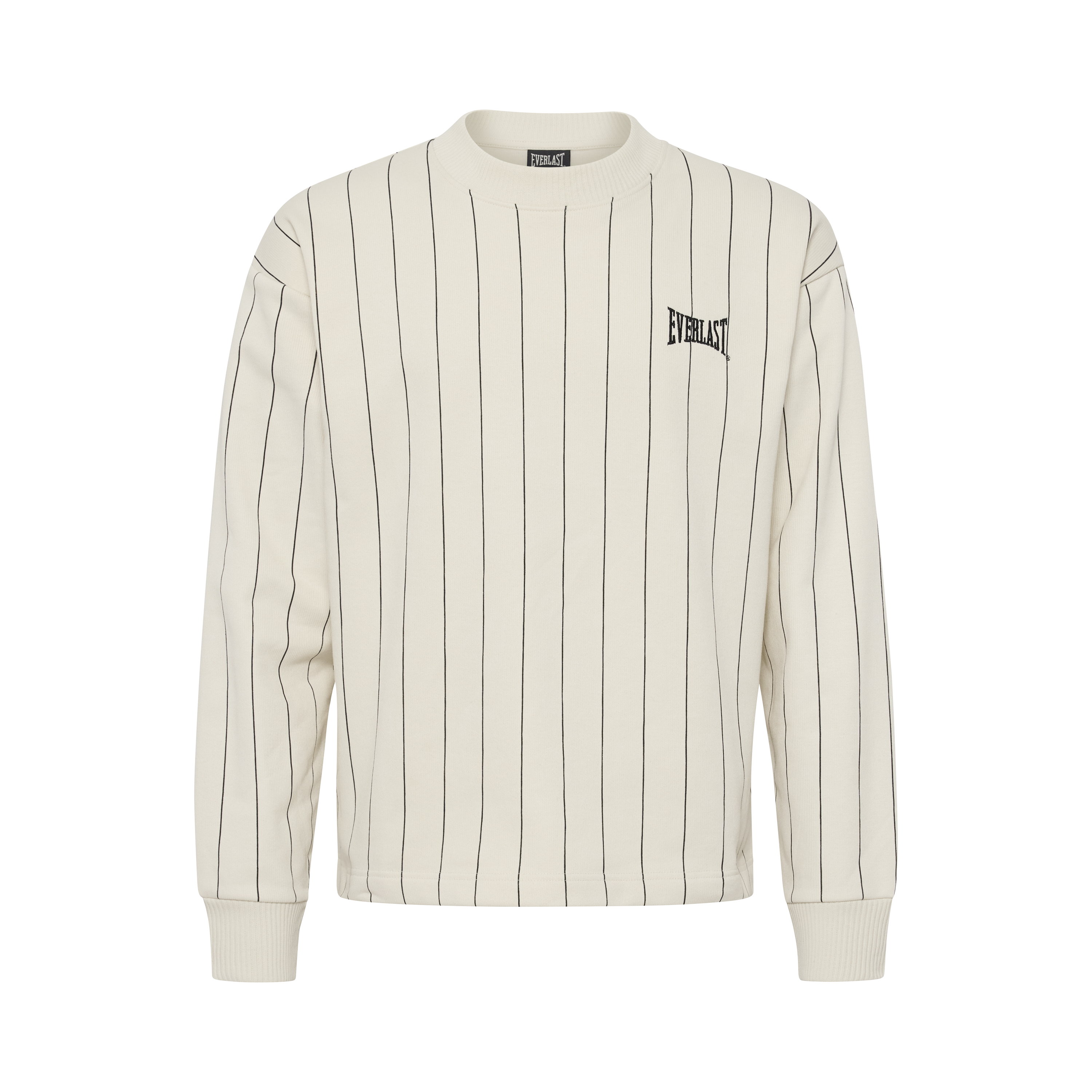 • Foreverlast Pin Stripe Crewneck in an off-white base featuring wrist cuffs & embroidery logo on chest.