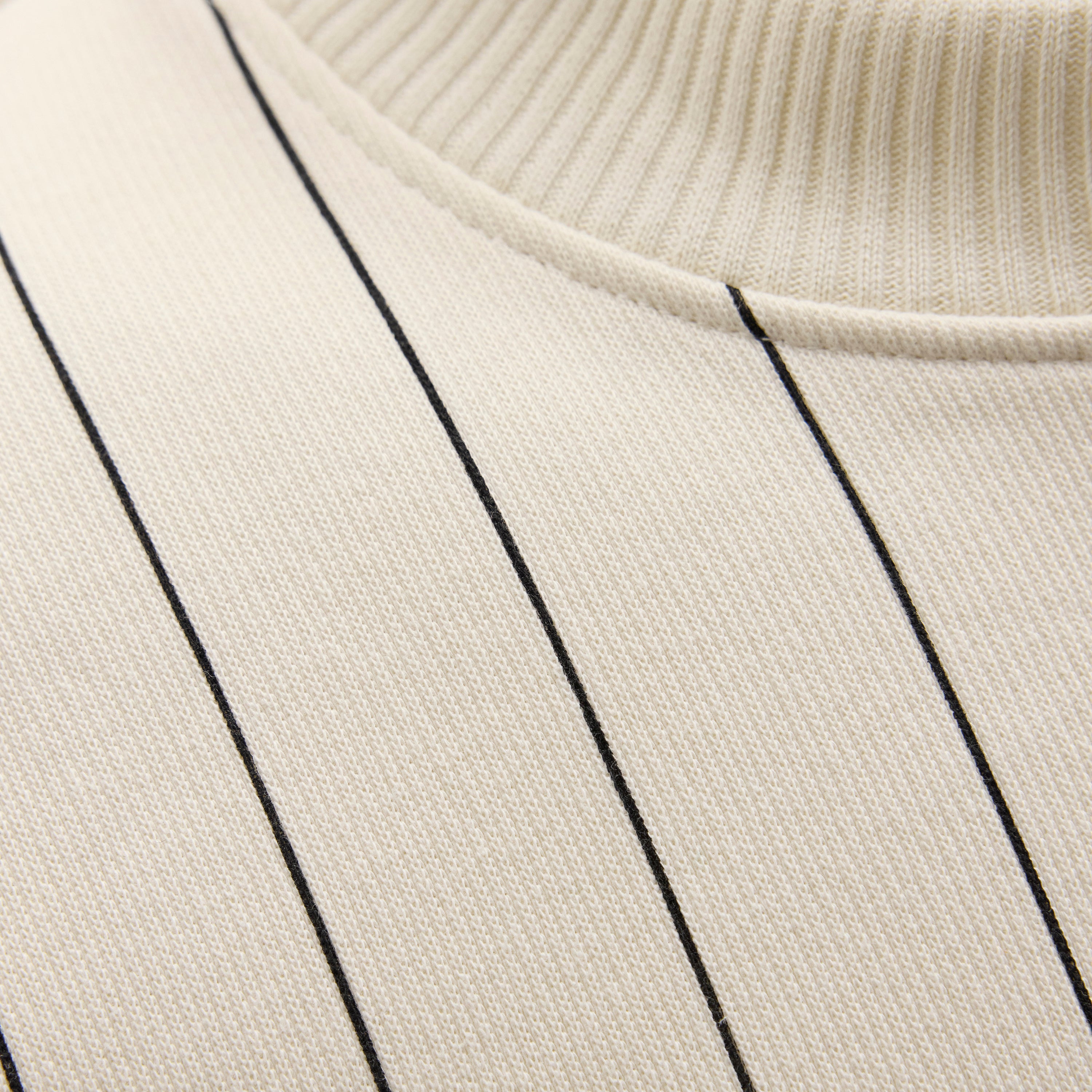 Foreverlast Pin Stripe Crewneck in an off-white base featuring wrist cuffs & embroidery logo on chest.