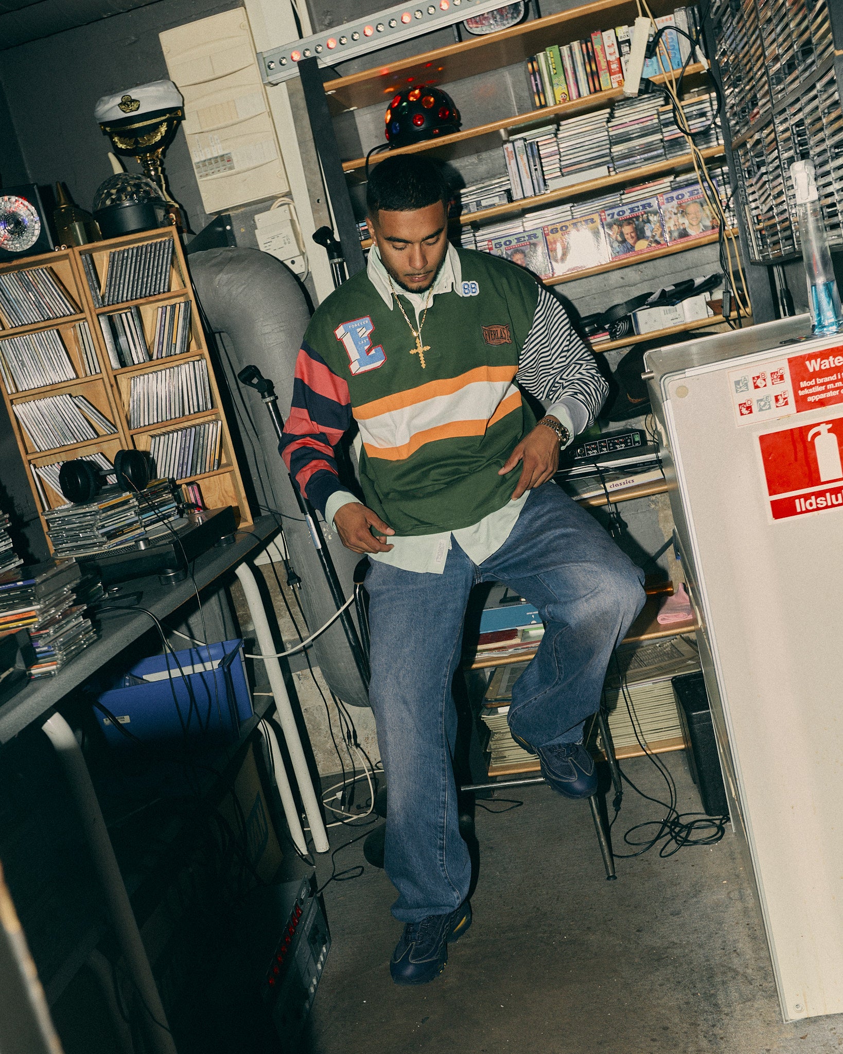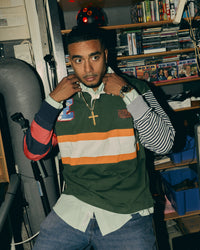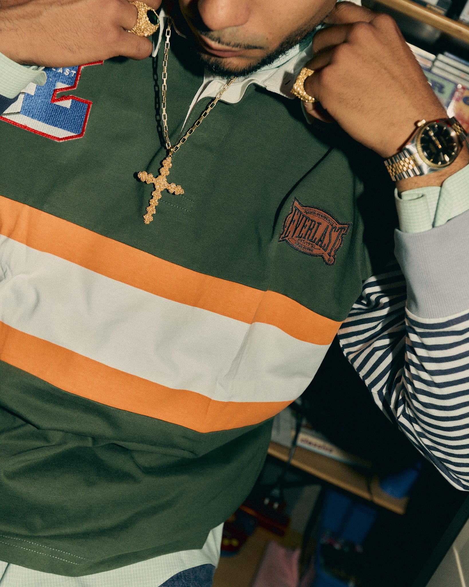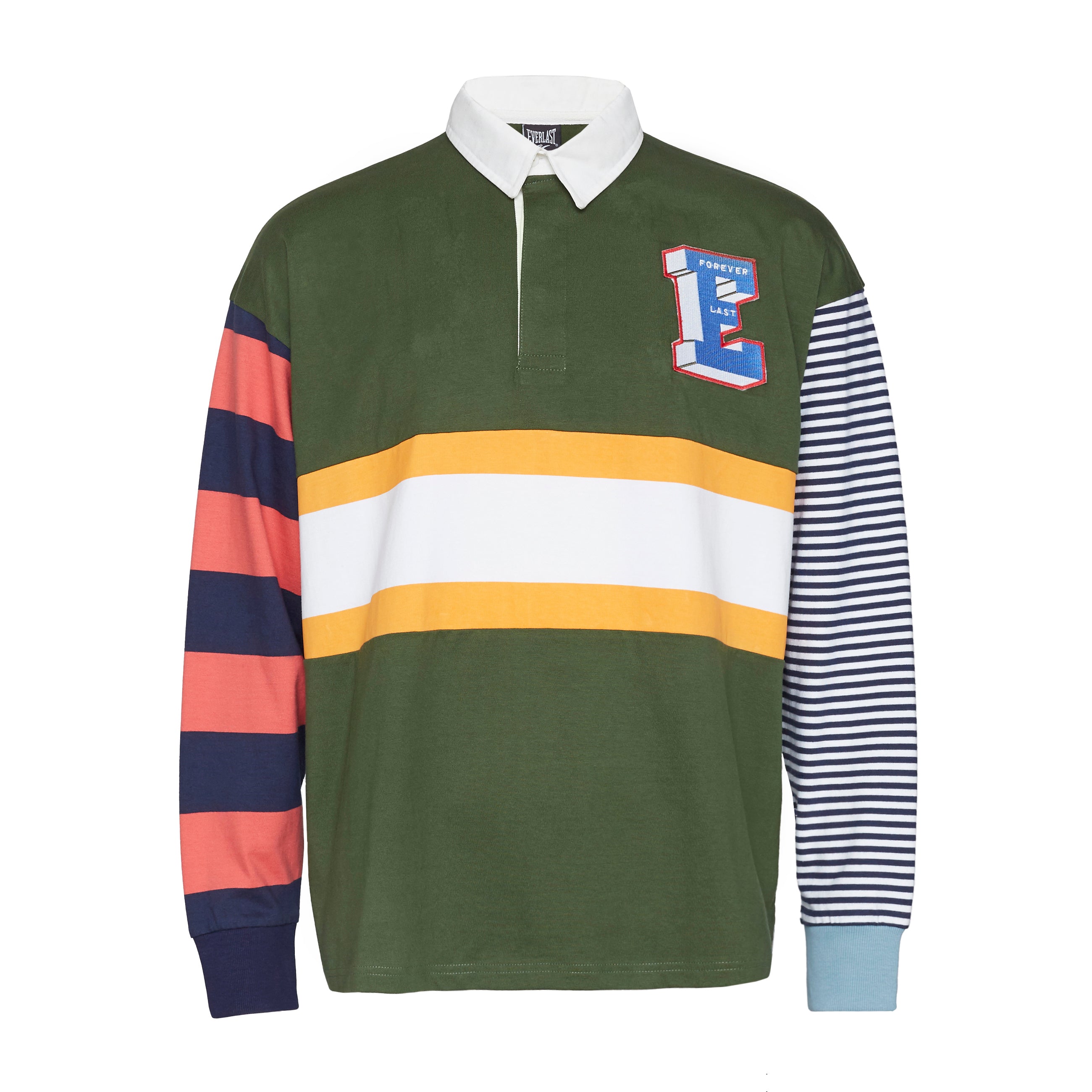 A heavy cotton longsleeve polo featuring a mixed & classic everlast chest patches