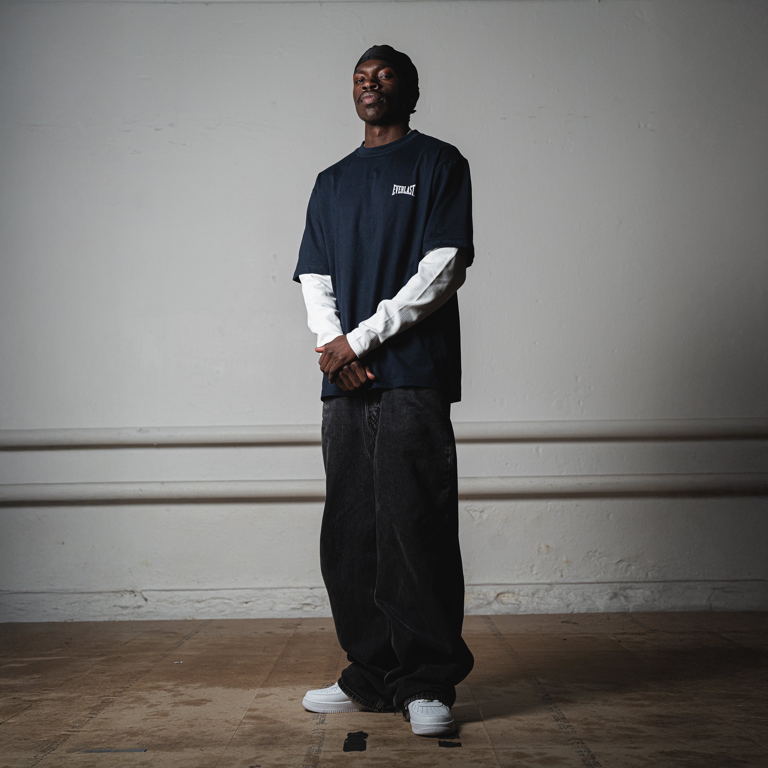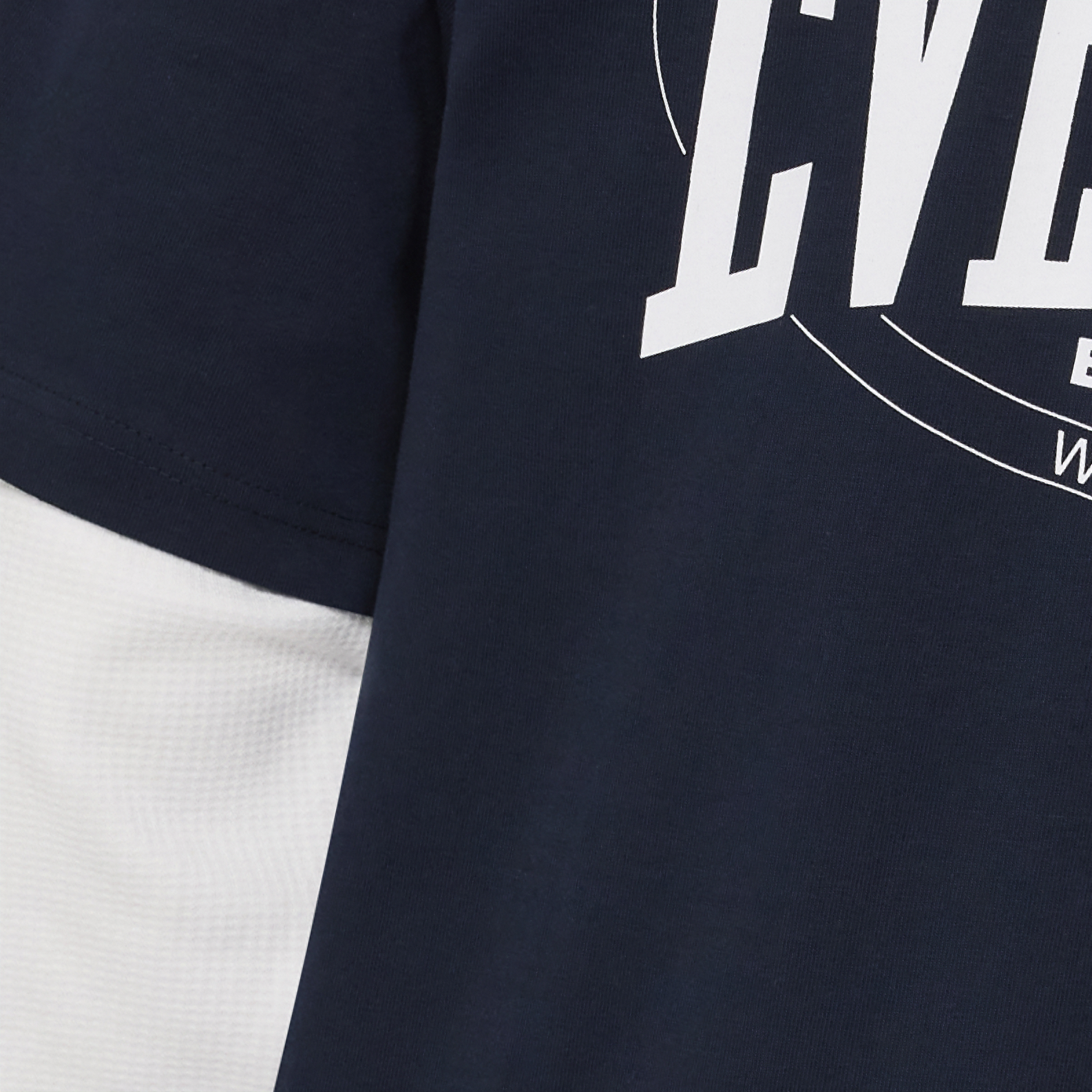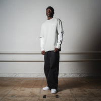 The “Waffle Topping Tee” is featuring double layer, mixing a heavy box fit cotton shell with waffle sleeves.