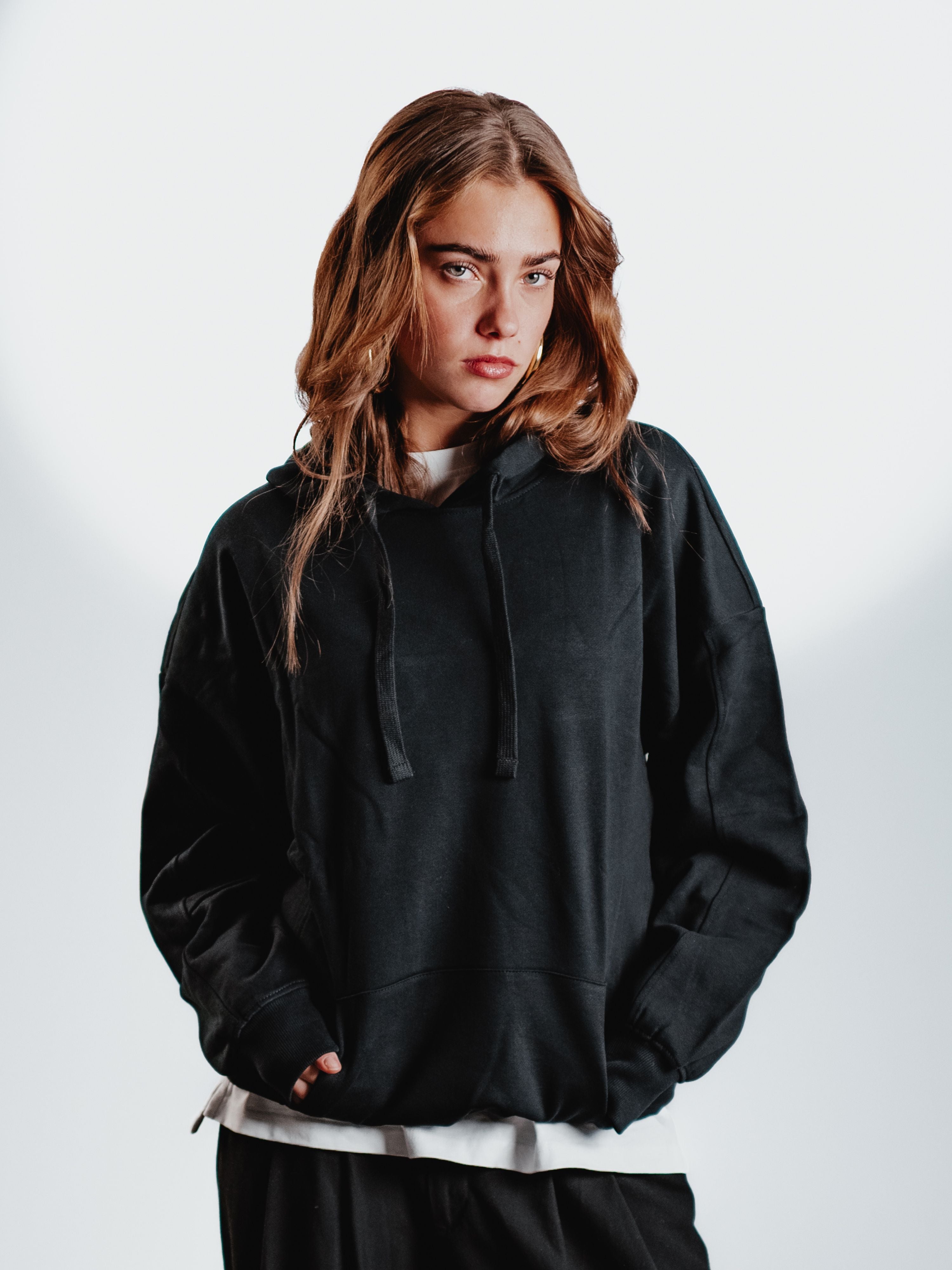 This sweatshirt hoodie is made in a heavy and comfortable quality with a raw, washed look. It's oversized and easy to wear as a layer or on its own - simple and ready for everyday wear.