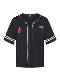 Sporty baseball inspireret jersey i polyester med et street udtryk. Kontrastpiping, knaplukning og ikoniske Everlast detaljer.